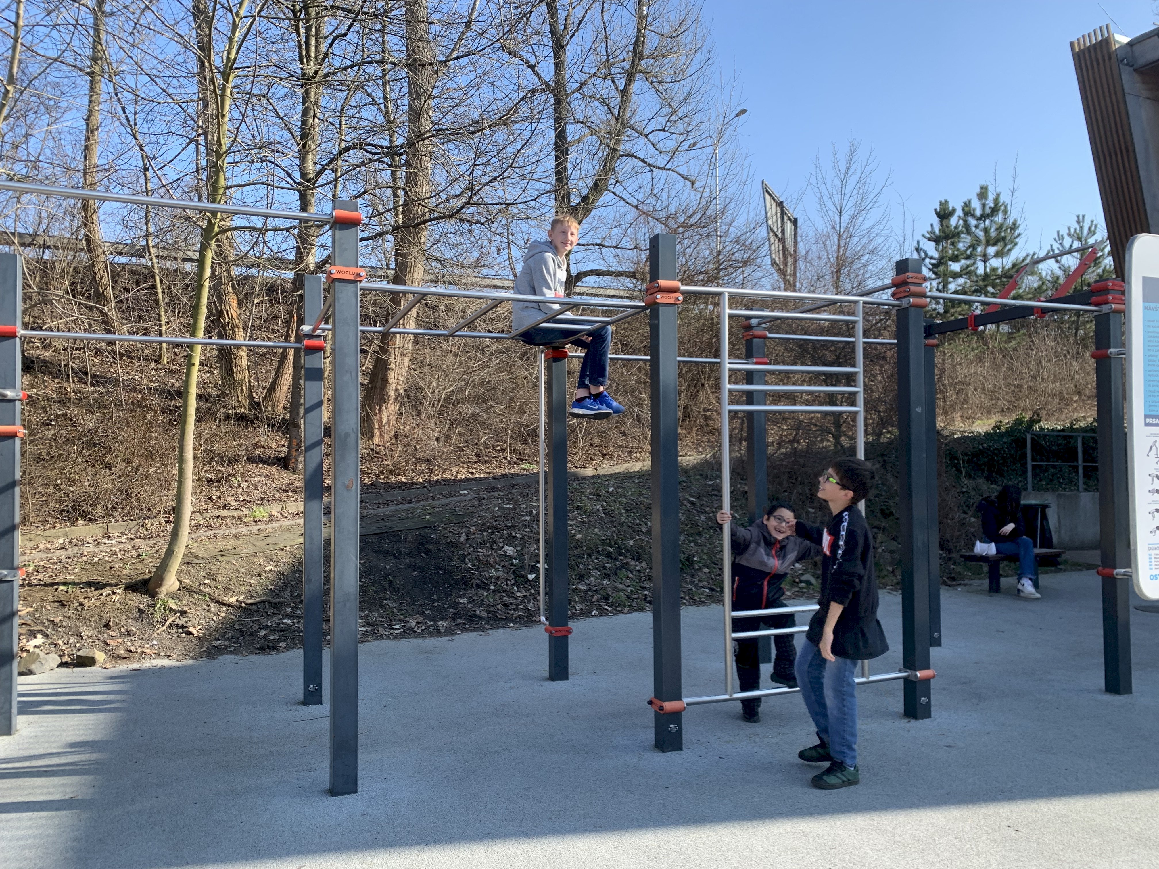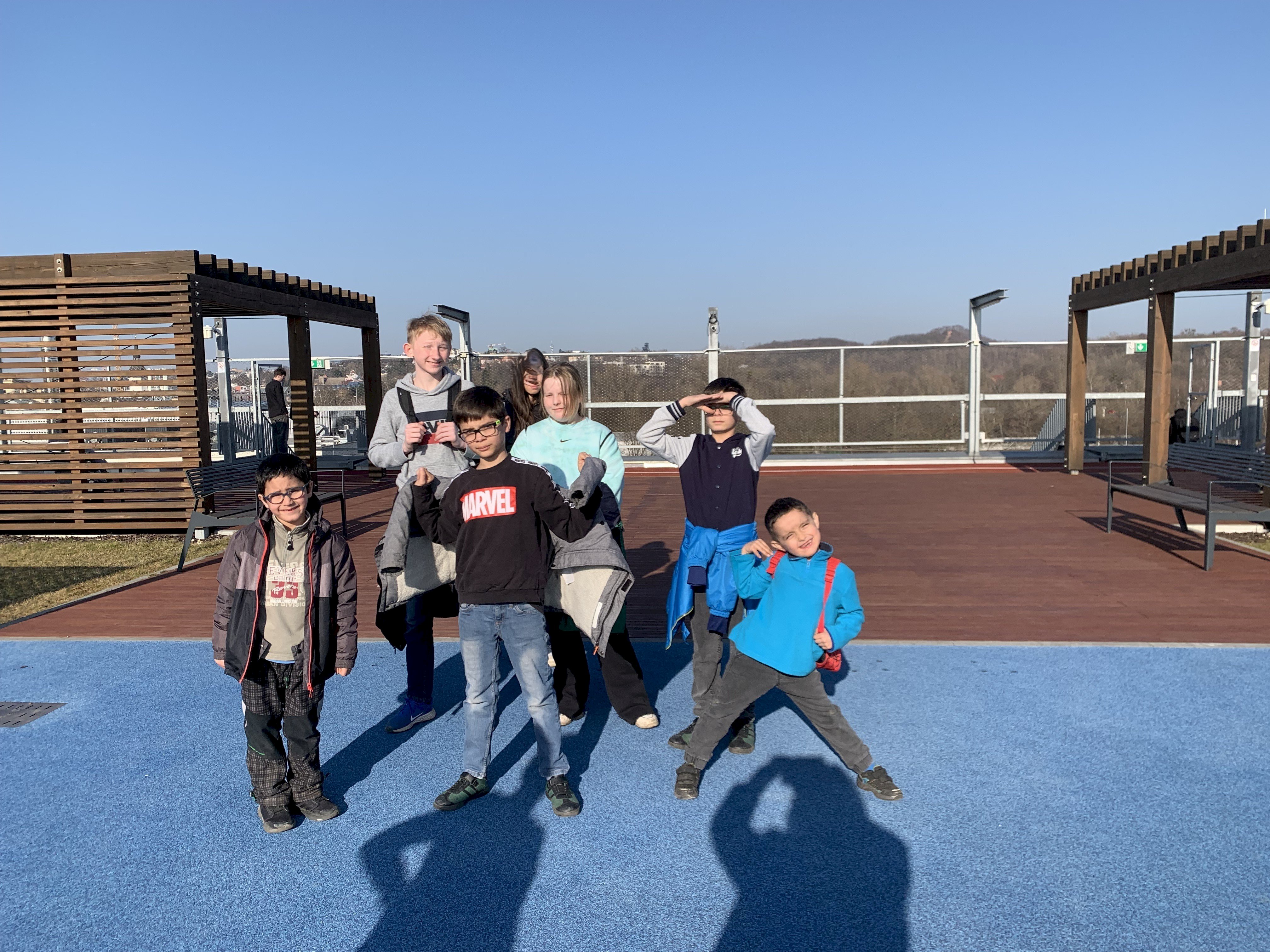 Sobotní odpoledne jsme trávili pěší turistikou po Ostravě. Z domova jsme se vydali k řece Ostravici a podél ní jsme došli k Loděnici. Tam si dětí protáhli těla a dali o kousek dál posilňujíce svačinu. Dětské hřiště pro malé a posilovací stroje pro starší. Následoval výstup po schodech na terasu vysoké školy. Na oválu si děti zaběhali a pak jsme se přes centrum vrátili domů.